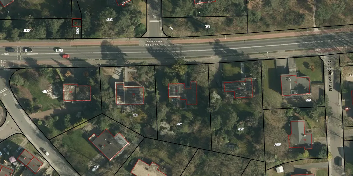 Het perceel waarop Moltweg 72 staat heeft een oppervlakte van 1390 m². Dit is een zeer groot perceel. De perceeloppervlakte wordt geregistreerd door het Kadaster. Gedetailleerde informatie over de maten van dit perceel kunt u vinden in het rapport Kadastrale kaart met maatvoering van Moltweg 72.
