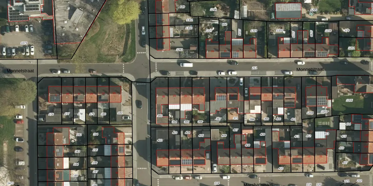 Het perceel waarop Monnetstraat 21 staat heeft een oppervlakte van 171 m². Dit is een middelgroot perceel. De perceeloppervlakte wordt geregistreerd door het Kadaster. Gedetailleerde informatie over de maten van dit perceel kunt u vinden in het rapport Kadastrale kaart met maatvoering van Monnetstraat 21.