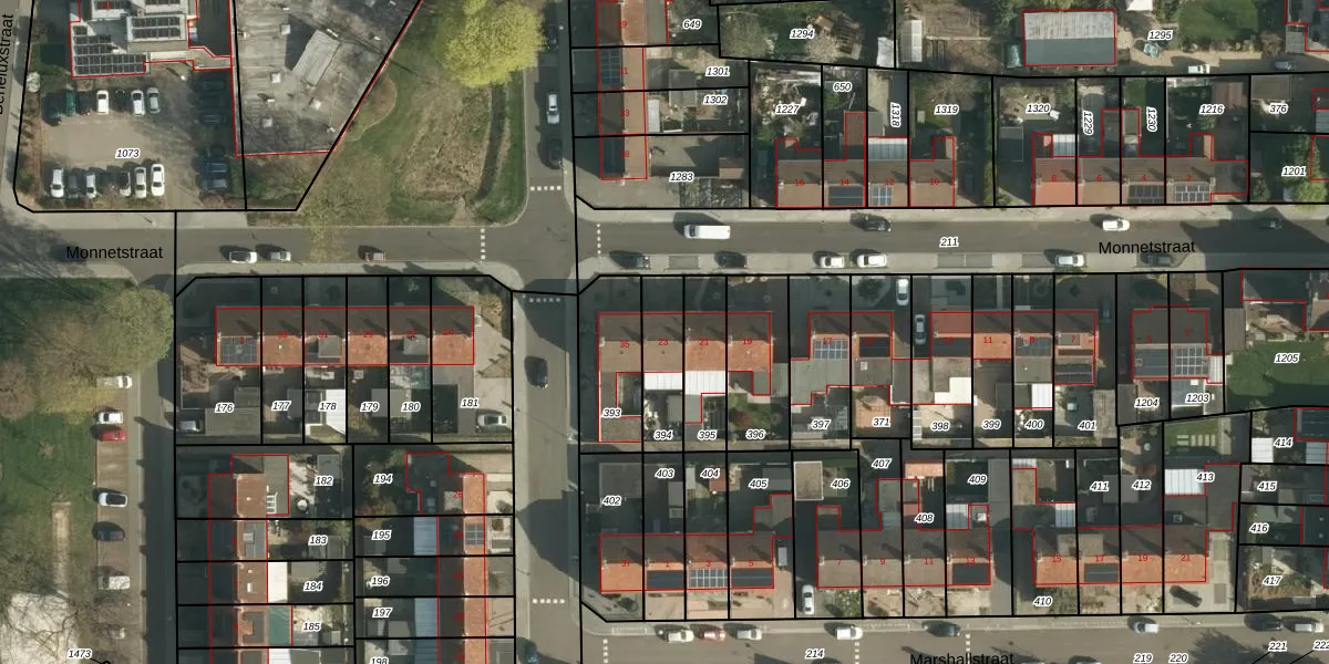 Gebruik de zoekbalk of klik op een perceel voor informatie over de adressen binnen dit perceel.