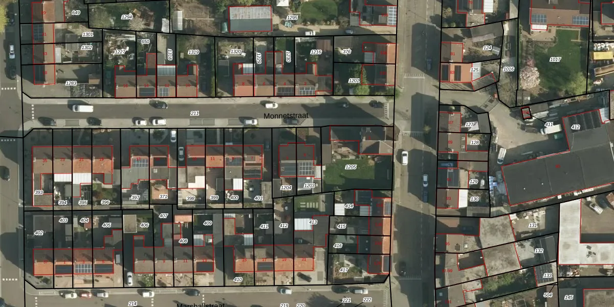 Het perceel waarop Monnetstraat 3 staat heeft een oppervlakte van 181 m². Dit is een middelgroot perceel. De perceeloppervlakte wordt geregistreerd door het Kadaster. Gedetailleerde informatie over de maten van dit perceel kunt u vinden in het rapport Kadastrale kaart met maatvoering van Monnetstraat 3.