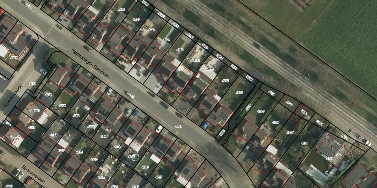Het perceel waarop Namiddagse Driessen 40 staat heeft een oppervlakte van 334 m². Dit is een groot perceel. De perceeloppervlakte wordt geregistreerd door het Kadaster. Gedetailleerde informatie over de maten van dit perceel kunt u vinden in het rapport Kadastrale kaart met maatvoering van Namiddagse Driessen 40.