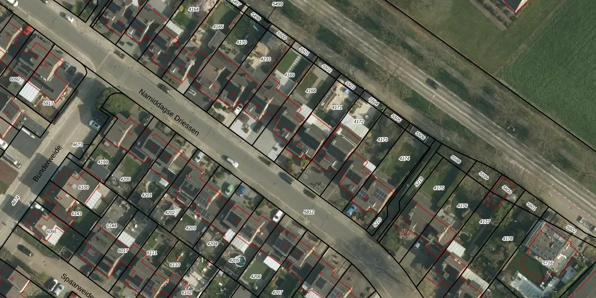 Het perceel waarop Namiddagse Driessen 42 staat heeft een oppervlakte van 329 m². Dit is een groot perceel. De perceeloppervlakte wordt geregistreerd door het Kadaster. Gedetailleerde informatie over de maten van dit perceel kunt u vinden in het rapport Kadastrale kaart met maatvoering van Namiddagse Driessen 42.