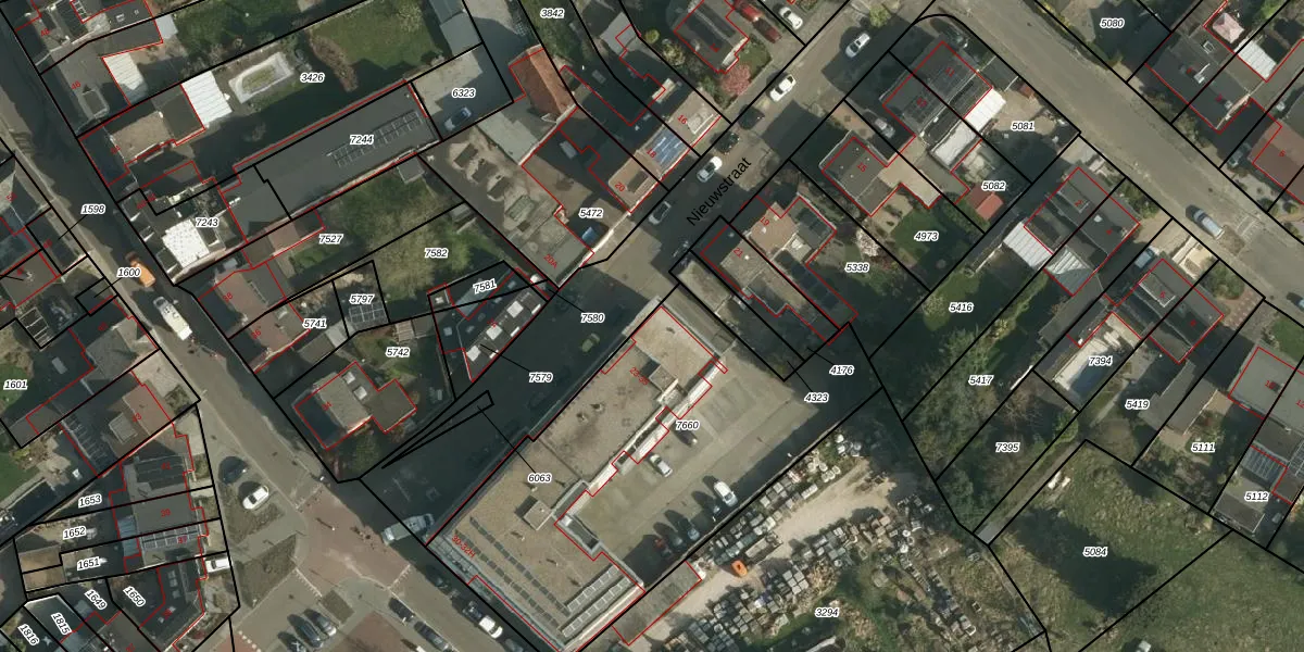 Het perceel waarop Nieuwstraat 23 staat heeft een oppervlakte van 1778 m². Dit is een zeer groot perceel. De perceeloppervlakte wordt geregistreerd door het Kadaster. Gedetailleerde informatie over de maten van dit perceel kunt u vinden in het rapport Kadastrale kaart met maatvoering van Nieuwstraat 23.