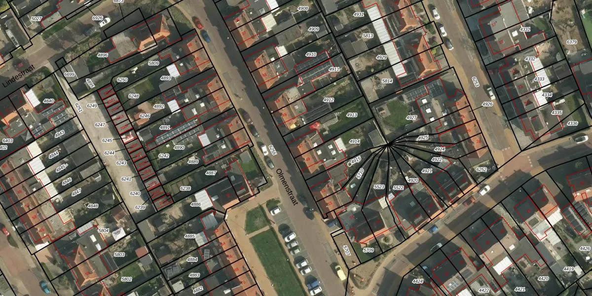 Het perceel waarop Olmenstraat 47 staat heeft een oppervlakte van 256 m². Dit is een middelgroot perceel. De perceeloppervlakte wordt geregistreerd door het Kadaster. Gedetailleerde informatie over de maten van dit perceel kunt u vinden in het rapport Kadastrale kaart met maatvoering van Olmenstraat 47.