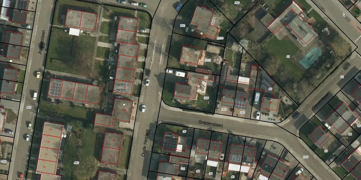 Het perceel waarop Oude Heide 3-A staat heeft een oppervlakte van 630 m². Dit is een groot perceel. De perceeloppervlakte wordt geregistreerd door het Kadaster. Gedetailleerde informatie over de maten van dit perceel kunt u vinden in het rapport Kadastrale kaart met maatvoering van Oude Heide 3-A.