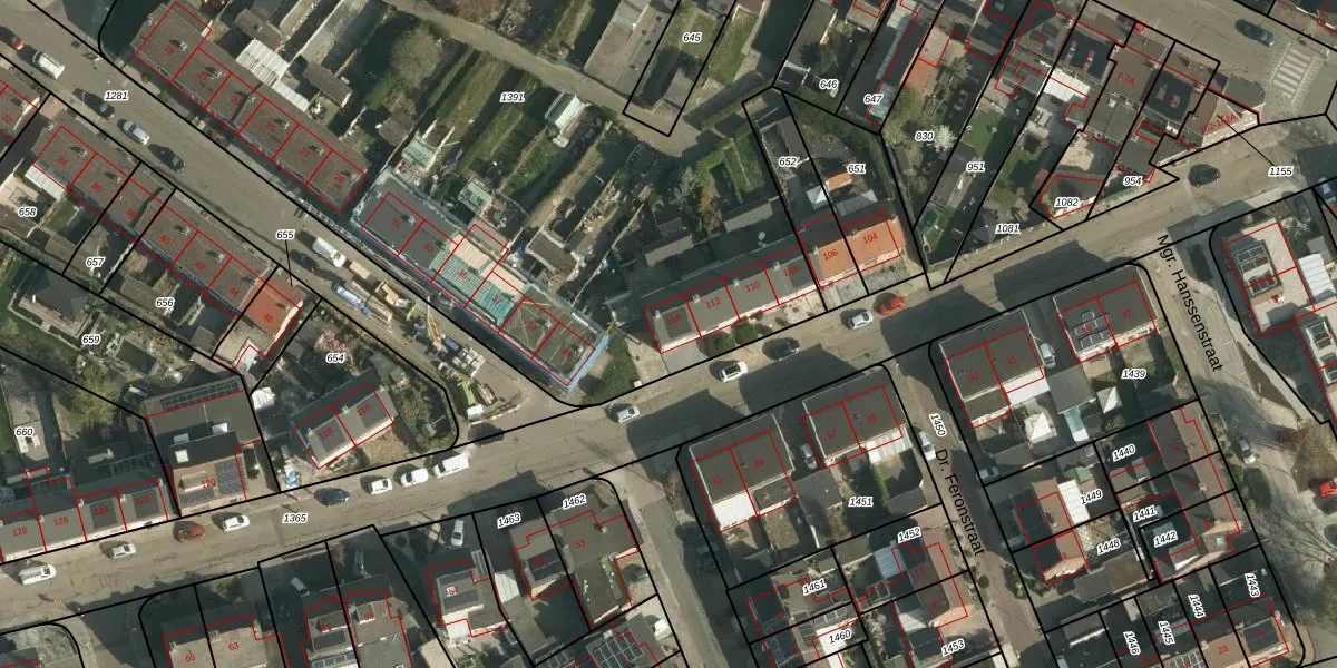 Het perceel waarop het adres ligt is NWH01-C-1391. De afkorting 'NWH01' staat voor kadastrale gemeente Nieuwenhagen. Het perceel is met 6156 m² relatief groot. Het gemiddelde ligt in de kadastrale gemeente Nieuwenhagen op 1361,99 m². Het kleinste perceel in de kadastrale gemeente is 1 m² groot. De grootste perceeloppervlakte is 17,6 ha. Er zijn 22 adressen aanwezig op het perceel. De huidige grenzen van het perceel zijn digitaal in de Basisregistratie Kadaster (BRK) geregistreerd op 18-09-2007.