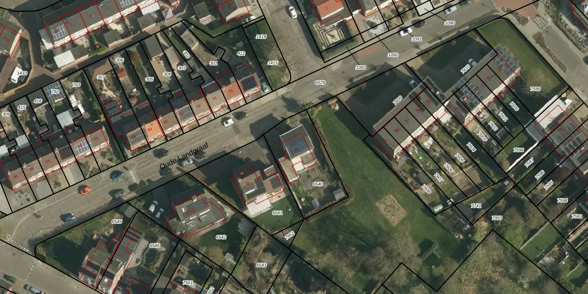 Het perceel waarop Oude Landgraaf 33 staat heeft een oppervlakte van 565 m². Dit is een groot perceel. De perceeloppervlakte wordt geregistreerd door het Kadaster. Gedetailleerde informatie over de maten van dit perceel kunt u vinden in het rapport Kadastrale kaart met maatvoering van Oude Landgraaf 33.