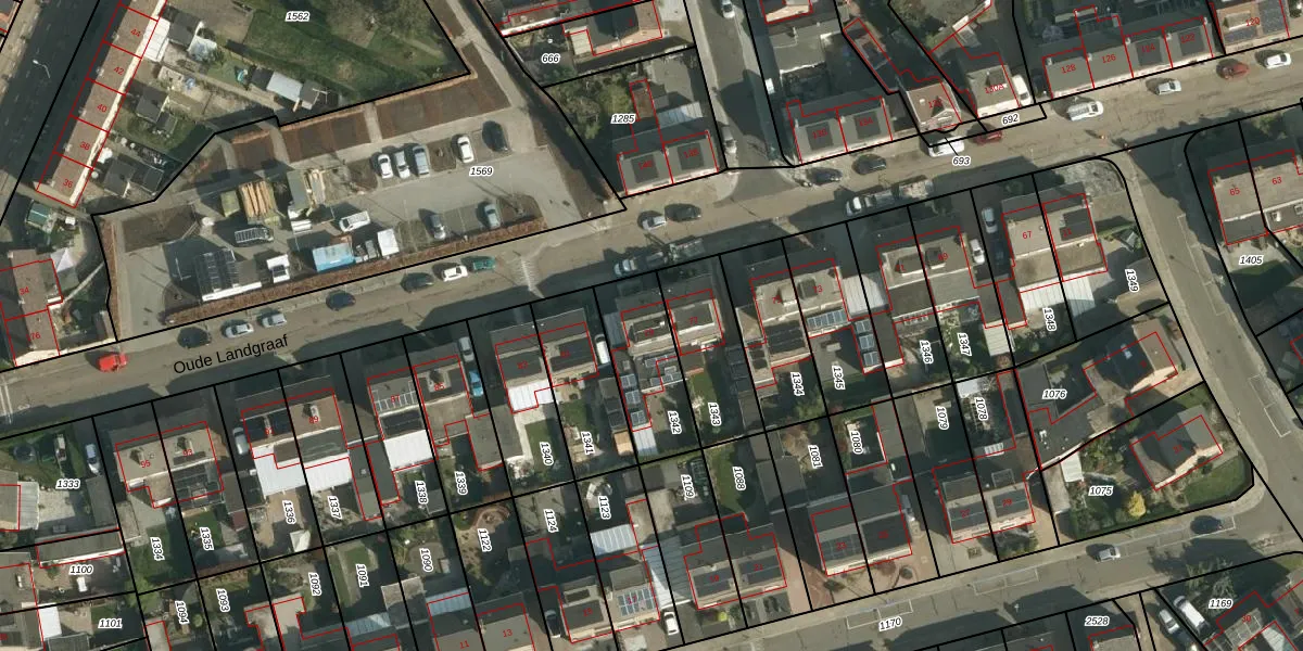 Gebruik de zoekbalk of klik op een perceel voor informatie over de adressen binnen dit perceel.