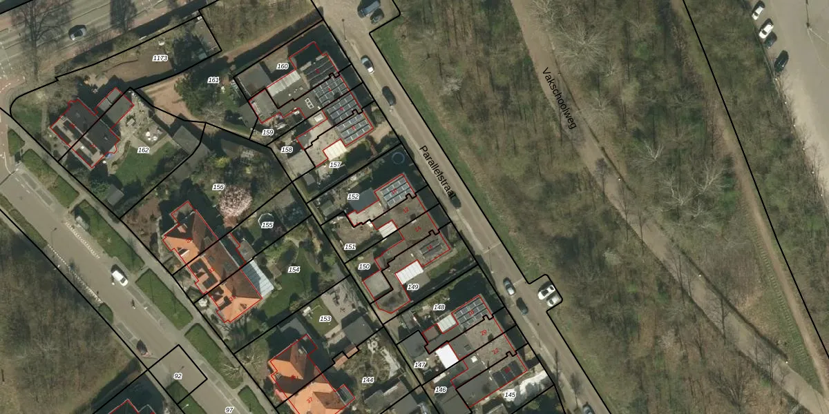Het perceel waarop Parallelstraat 12 staat heeft een oppervlakte van 182 m². Dit is een middelgroot perceel. De perceeloppervlakte wordt geregistreerd door het Kadaster. Gedetailleerde informatie over de maten van dit perceel kunt u vinden in het rapport Kadastrale kaart met maatvoering van Parallelstraat 12.