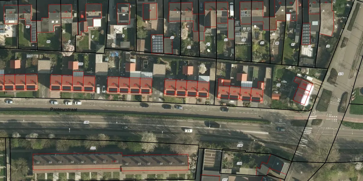 Pasteurstraat 39 is gelegen op kadastraal perceel SBG01G100. Deze kadastrale aanduiding is uniek en wordt gebruikt door het Kadaster om eigendomsrechten en andere zakelijke rechten vast te leggen. Het perceel maakt onderdeel uit van de kadastrale gemeente Schaesberg.