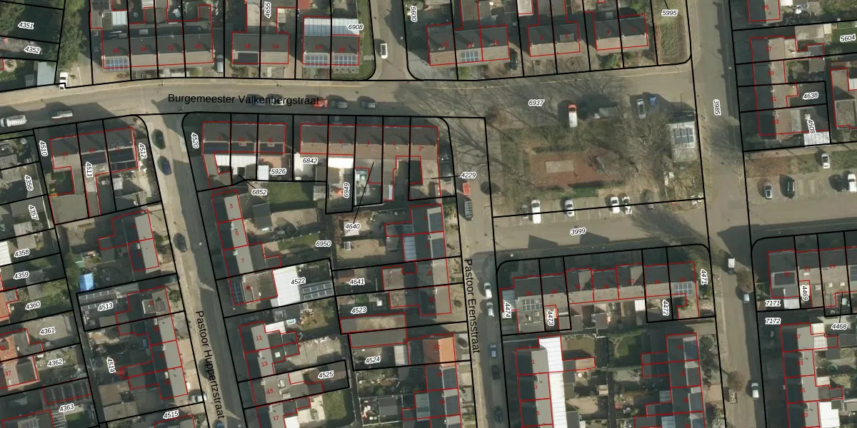 Het perceel waarop Pastoor Erensstraat 4 staat heeft een oppervlakte van 1123 m². Dit is een zeer groot perceel. De perceeloppervlakte wordt geregistreerd door het Kadaster. Gedetailleerde informatie over de maten van dit perceel kunt u vinden in het rapport Kadastrale kaart met maatvoering van Pastoor Erensstraat 4.