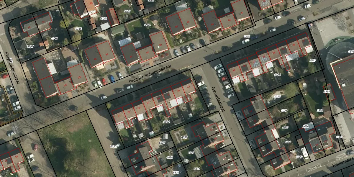 Pastoor Schattenstraat 45 is gelegen op kadastraal perceel SBG01B6831. Deze kadastrale aanduiding is uniek en wordt gebruikt door het Kadaster om eigendomsrechten en andere zakelijke rechten vast te leggen. Het perceel maakt onderdeel uit van de kadastrale gemeente Schaesberg.