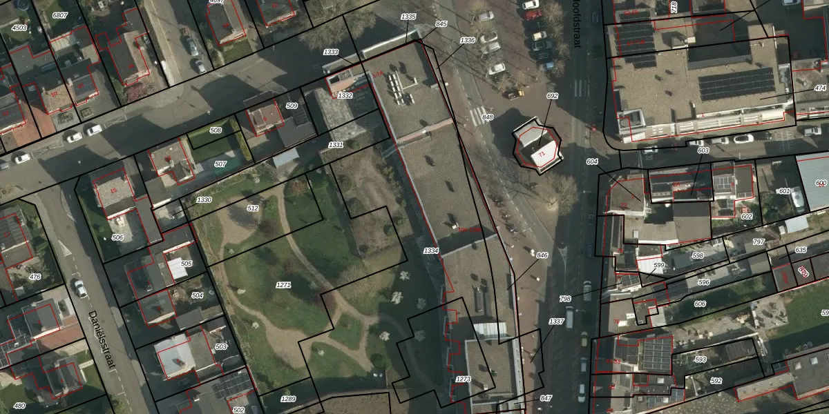Het adres is gelegen op perceel 1334 in de sectie F en de kadastrale gemeente Schaesberg. De kadastrale aanduiding is aldus SBG01-F-1334. Het perceel is met 2271 m² relatief groot. Het gemiddelde ligt in de kadastrale gemeente Schaesberg op 911,66 m². De grootste perceeloppervlakte in de kadastrale gemeente is 16,1 ha. De kleinste oppervlakte bedraagt 0 m². Op het perceel liggen in totaal 26 adressen. De huidige grenzen van het perceel zijn digitaal in de Basisregistratie Kadaster (BRK) geregistreerd op 30-11-2011.