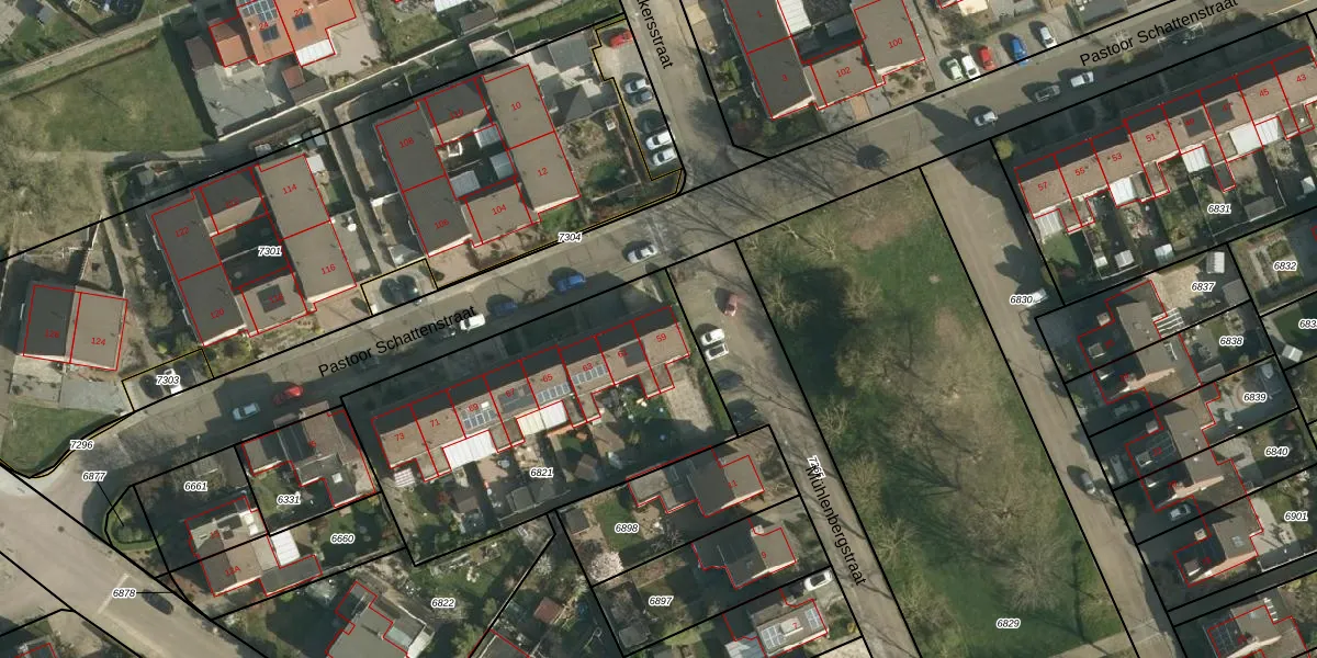 Pastoor Schattenstraat 59 is gelegen op kadastraal perceel SBG01B6821. Deze kadastrale aanduiding is uniek en wordt gebruikt door het Kadaster om eigendomsrechten en andere zakelijke rechten vast te leggen. Het perceel maakt onderdeel uit van de kadastrale gemeente Schaesberg.
