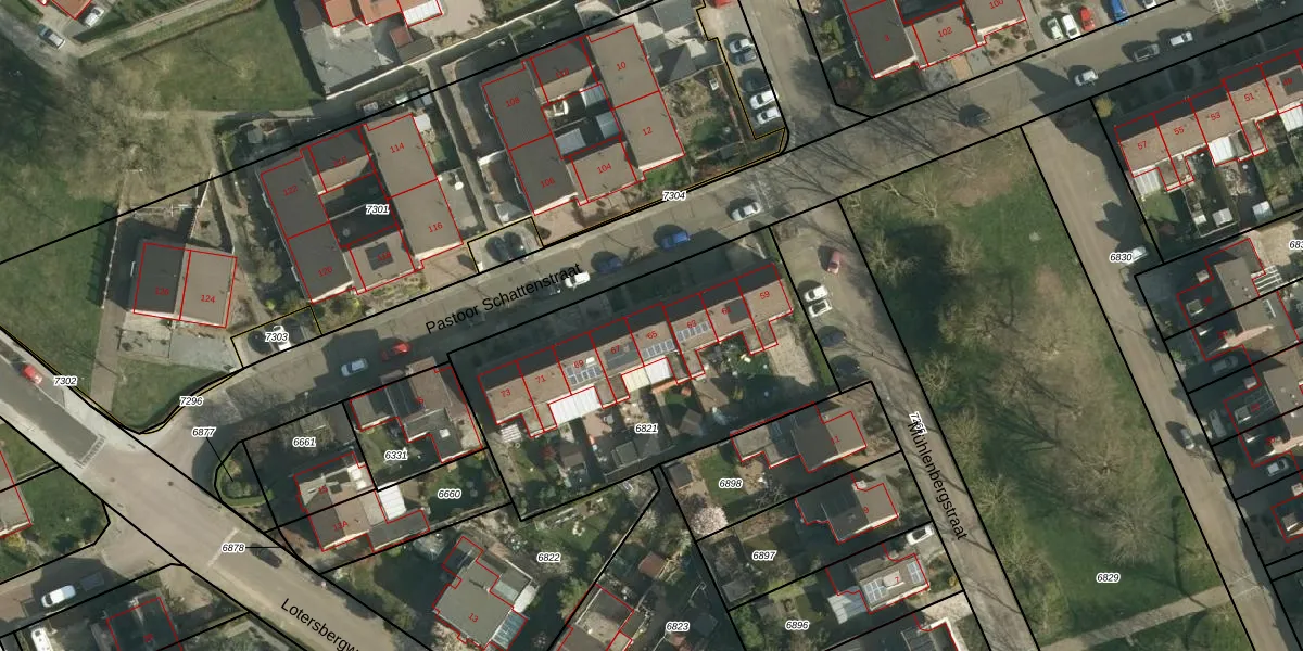 Pastoor Schattenstraat 65 is gelegen op kadastraal perceel SBG01B6821. Deze kadastrale aanduiding is uniek en wordt gebruikt door het Kadaster om eigendomsrechten en andere zakelijke rechten vast te leggen. Het perceel maakt onderdeel uit van de kadastrale gemeente Schaesberg.