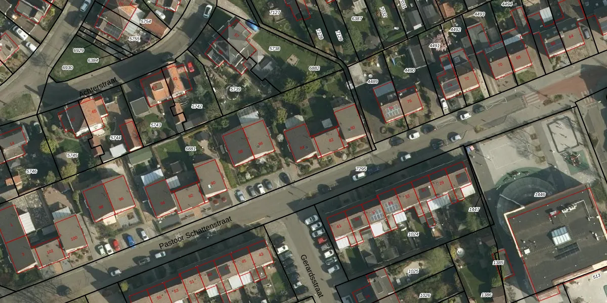Het perceel waarop Pastoor Schattenstraat 84 staat heeft een oppervlakte van 3785 m². Dit is een zeer groot perceel. De perceeloppervlakte wordt geregistreerd door het Kadaster. Gedetailleerde informatie over de maten van dit perceel kunt u vinden in het rapport Kadastrale kaart met maatvoering van Pastoor Schattenstraat 84.