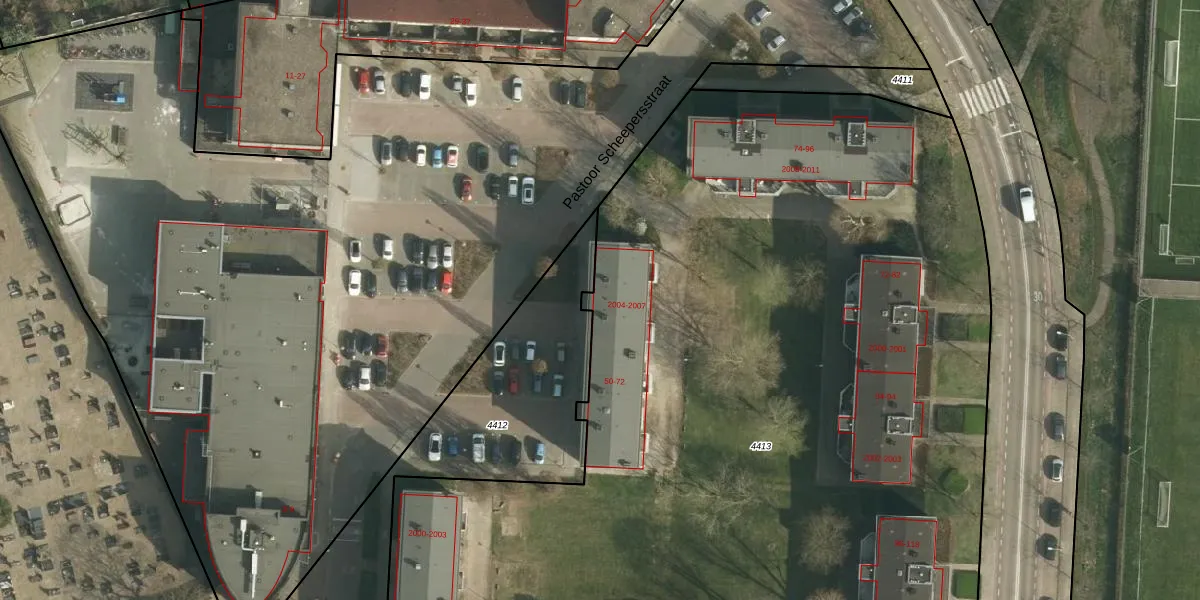Het perceel waarop Pastoor Scheepersstraat 66 staat heeft een oppervlakte van 8270 m². Dit is een zeer groot perceel. De perceeloppervlakte wordt geregistreerd door het Kadaster. Gedetailleerde informatie over de maten van dit perceel kunt u vinden in het rapport Kadastrale kaart met maatvoering van Pastoor Scheepersstraat 66.