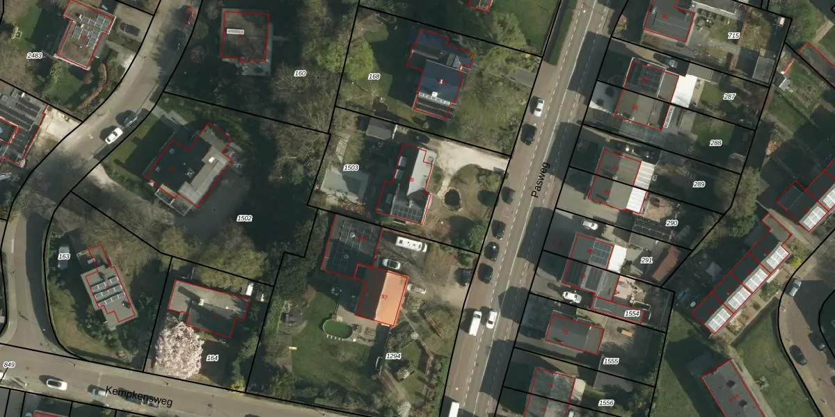 Pasweg 99 is gelegen op kadastraal perceel SBG01E1503. Deze kadastrale aanduiding is uniek en wordt gebruikt door het Kadaster om eigendomsrechten en andere zakelijke rechten vast te leggen. Het perceel maakt onderdeel uit van de kadastrale gemeente Schaesberg.