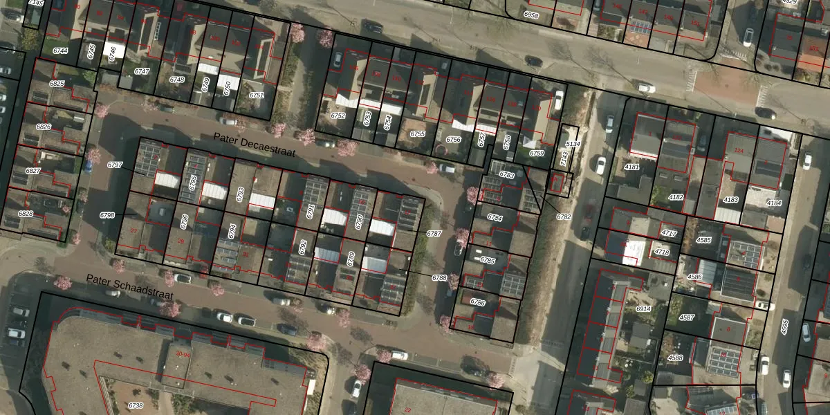 Pater Decaestraat 12 is gelegen op kadastraal perceel UBH00C6787. Deze kadastrale aanduiding is uniek en wordt gebruikt door het Kadaster om eigendomsrechten en andere zakelijke rechten vast te leggen. Het perceel maakt onderdeel uit van de kadastrale gemeente Ubach over Worms.