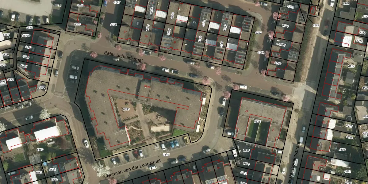 Het perceel waarop Pater Schaadstraat 38 staat heeft een oppervlakte van 2734 m². Dit is een zeer groot perceel. De perceeloppervlakte wordt geregistreerd door het Kadaster. Gedetailleerde informatie over de maten van dit perceel kunt u vinden in het rapport Kadastrale kaart met maatvoering van Pater Schaadstraat 38.