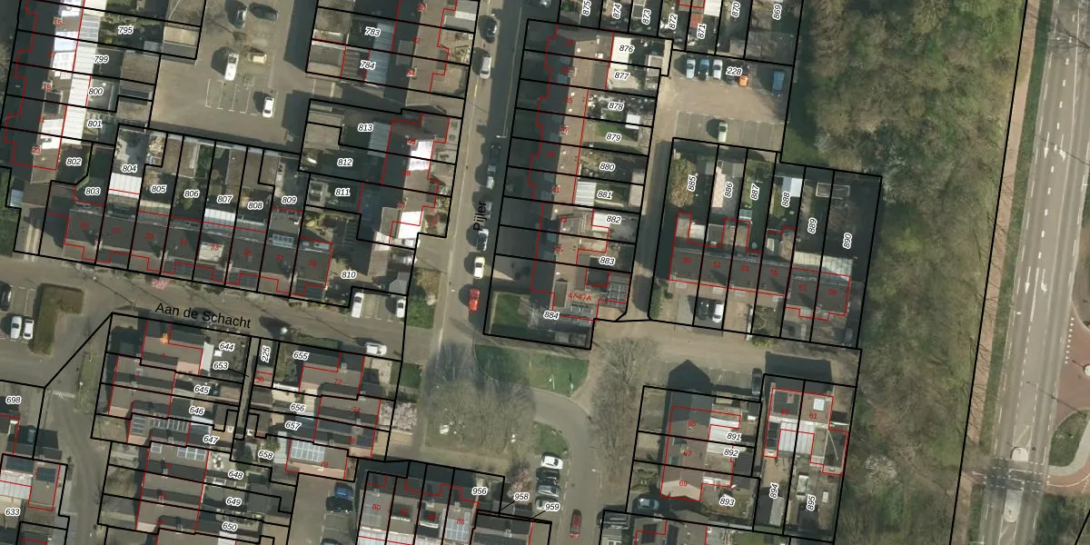 Het perceel waarop Pijler 47 staat heeft een oppervlakte van 344 m². Dit is een groot perceel. De perceeloppervlakte wordt geregistreerd door het Kadaster. Gedetailleerde informatie over de maten van dit perceel kunt u vinden in het rapport Kadastrale kaart met maatvoering van Pijler 47.