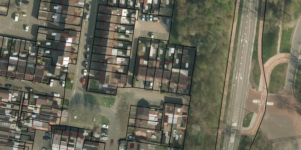 Het perceel waarop Pijler 51 staat heeft een oppervlakte van 181 m². Dit is een middelgroot perceel. De perceeloppervlakte wordt geregistreerd door het Kadaster. Gedetailleerde informatie over de maten van dit perceel kunt u vinden in het rapport Kadastrale kaart met maatvoering van Pijler 51.