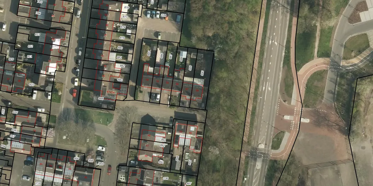 Het perceel waarop Pijler 57 staat heeft een oppervlakte van 173 m². Dit is een middelgroot perceel. De perceeloppervlakte wordt geregistreerd door het Kadaster. Gedetailleerde informatie over de maten van dit perceel kunt u vinden in het rapport Kadastrale kaart met maatvoering van Pijler 57.