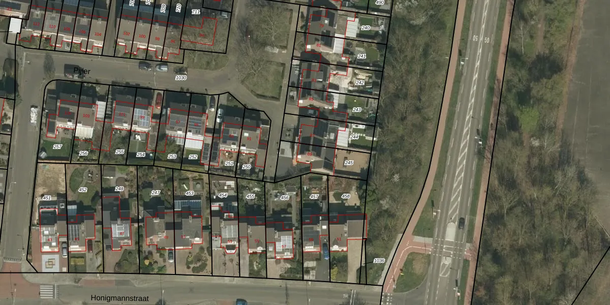 Het perceel waarop Pijler 89 staat heeft een oppervlakte van 300 m². Dit is een groot perceel. De perceeloppervlakte wordt geregistreerd door het Kadaster. Gedetailleerde informatie over de maten van dit perceel kunt u vinden in het rapport Kadastrale kaart met maatvoering van Pijler 89.