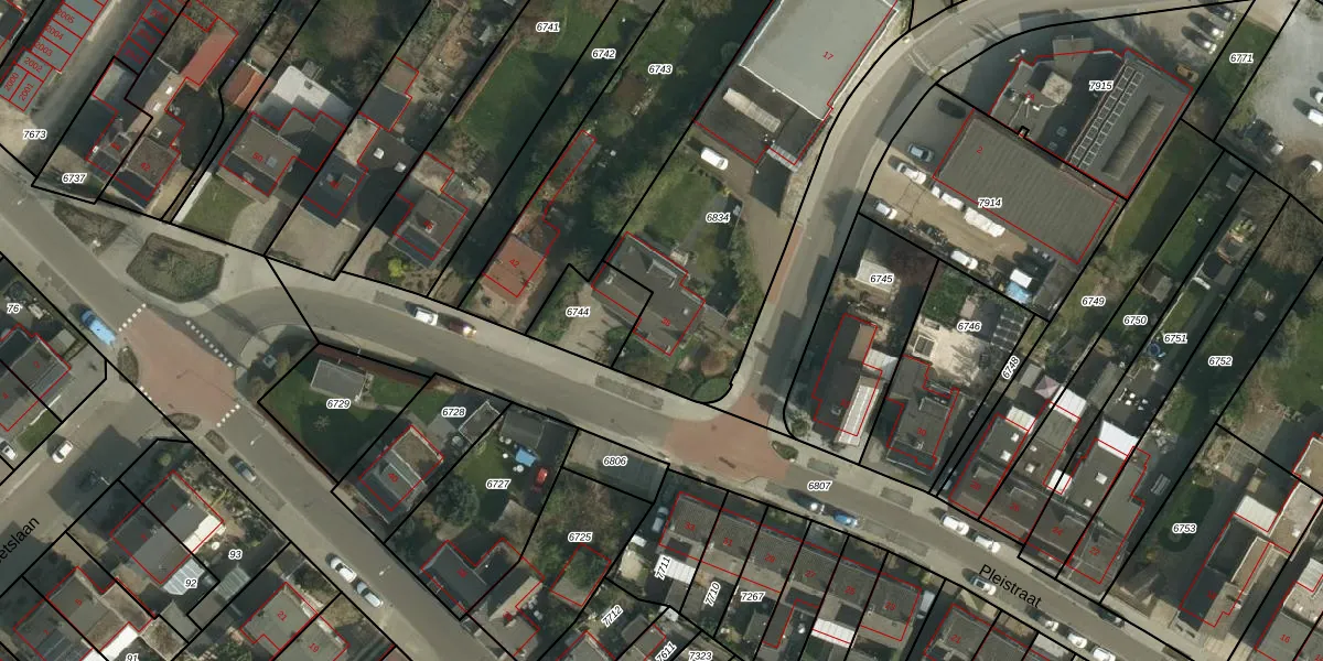 Het perceel waarop Pleistraat 38 staat heeft een oppervlakte van 1585 m². Dit is een zeer groot perceel. De perceeloppervlakte wordt geregistreerd door het Kadaster. Gedetailleerde informatie over de maten van dit perceel kunt u vinden in het rapport Kadastrale kaart met maatvoering van Pleistraat 38.