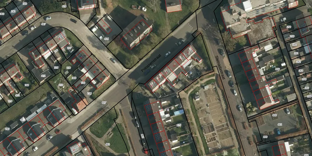 Het perceel waarop Prinssenstraat 15 staat heeft een oppervlakte van 2215 m². Dit is een zeer groot perceel. De perceeloppervlakte wordt geregistreerd door het Kadaster. Gedetailleerde informatie over de maten van dit perceel kunt u vinden in het rapport Kadastrale kaart met maatvoering van Prinssenstraat 15.
