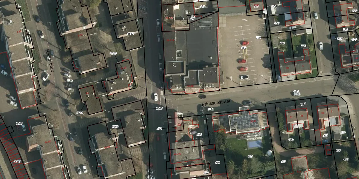 Het perceel waarop Prinssenstraat 52 staat heeft een oppervlakte van 2458 m². Dit is een zeer groot perceel. De perceeloppervlakte wordt geregistreerd door het Kadaster. Gedetailleerde informatie over de maten van dit perceel kunt u vinden in het rapport Kadastrale kaart met maatvoering van Prinssenstraat 52.