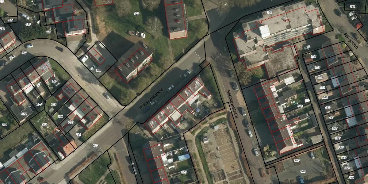Prinssenstraat 9 is gelegen op kadastraal perceel LGF00D875. Deze kadastrale aanduiding is uniek en wordt gebruikt door het Kadaster om eigendomsrechten en andere zakelijke rechten vast te leggen. Het perceel maakt onderdeel uit van de kadastrale gemeente Landgraaf.