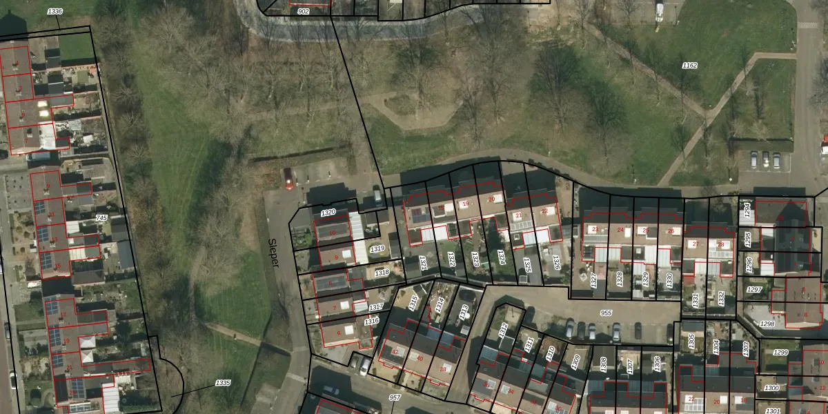 Gebruik de zoekbalk of klik op een perceel voor informatie over de adressen binnen dit perceel.