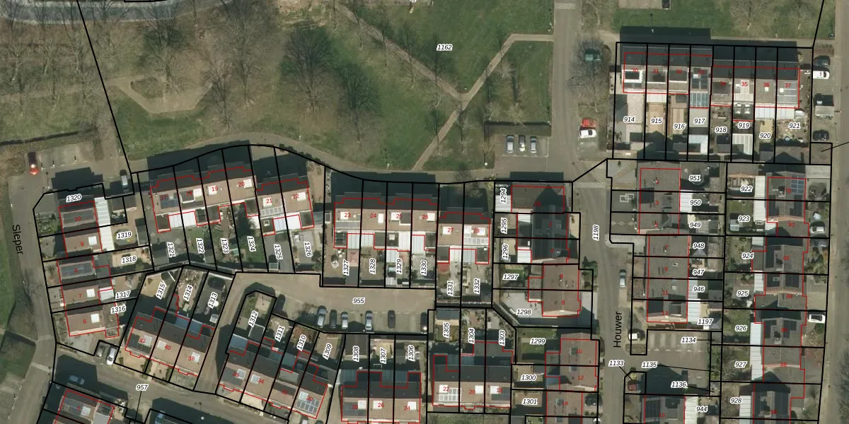 Gebruik de zoekbalk of klik op een perceel voor informatie over de adressen binnen dit perceel.