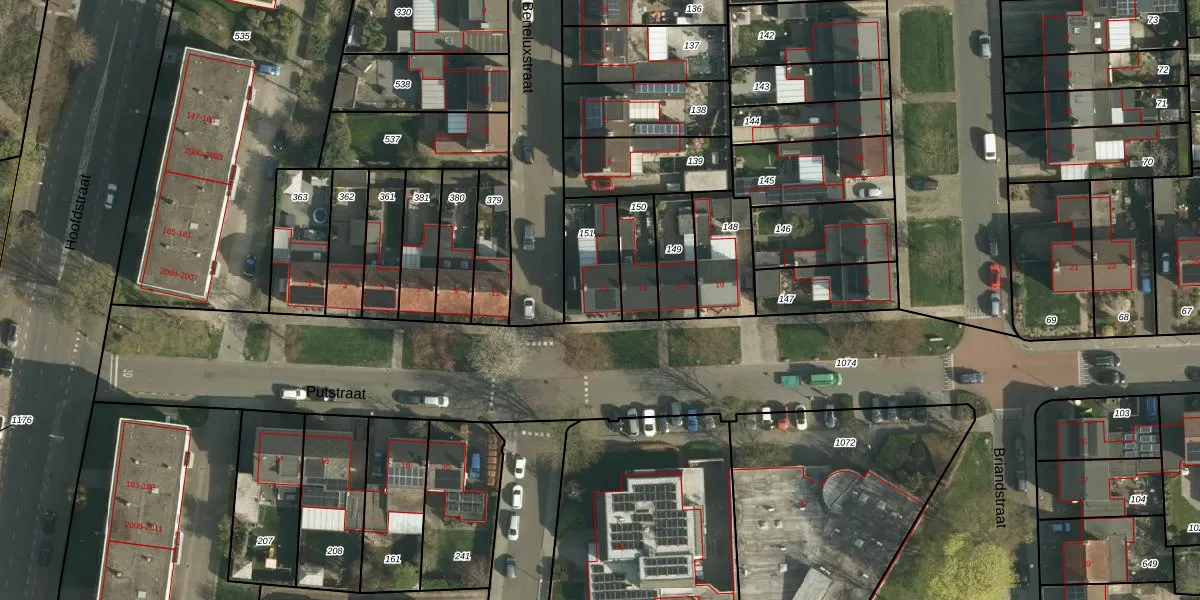 Gebruik de zoekbalk of klik op een perceel voor informatie over de adressen binnen dit perceel.