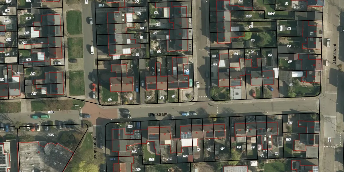 Gebruik de zoekbalk of klik op een perceel voor informatie over de adressen binnen dit perceel.