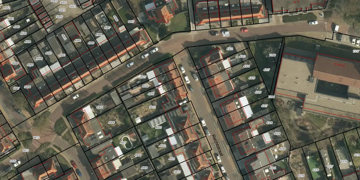 Het perceel waarop Rechtstraat 8 staat heeft een oppervlakte van 344 m². Dit is een groot perceel. De perceeloppervlakte wordt geregistreerd door het Kadaster. Gedetailleerde informatie over de maten van dit perceel kunt u vinden in het rapport Kadastrale kaart met maatvoering van Rechtstraat 8.