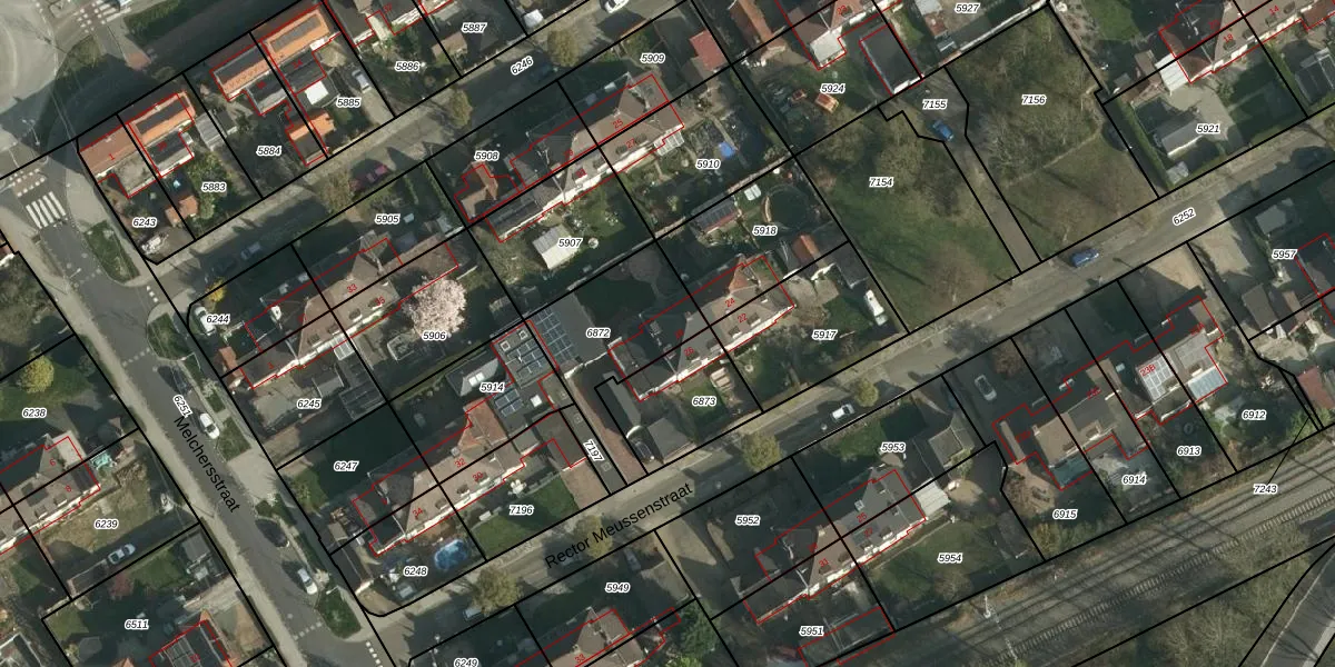 Rector Meussenstraat 28 is gelegen op kadastraal perceel SBG01B6872. Deze kadastrale aanduiding is uniek en wordt gebruikt door het Kadaster om eigendomsrechten en andere zakelijke rechten vast te leggen. Het perceel maakt onderdeel uit van de kadastrale gemeente Schaesberg.