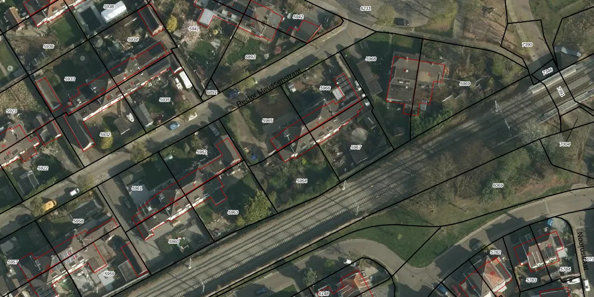 Rector Meussenstraat 7 is gelegen op kadastraal perceel SBG01B5964. Deze kadastrale aanduiding is uniek en wordt gebruikt door het Kadaster om eigendomsrechten en andere zakelijke rechten vast te leggen. Het perceel maakt onderdeel uit van de kadastrale gemeente Schaesberg.