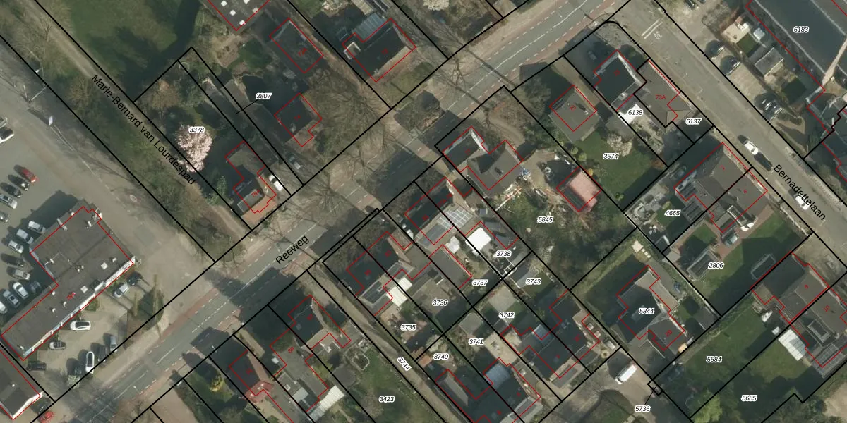 Gebruik de zoekbalk of klik op een perceel voor informatie over de adressen binnen dit perceel.