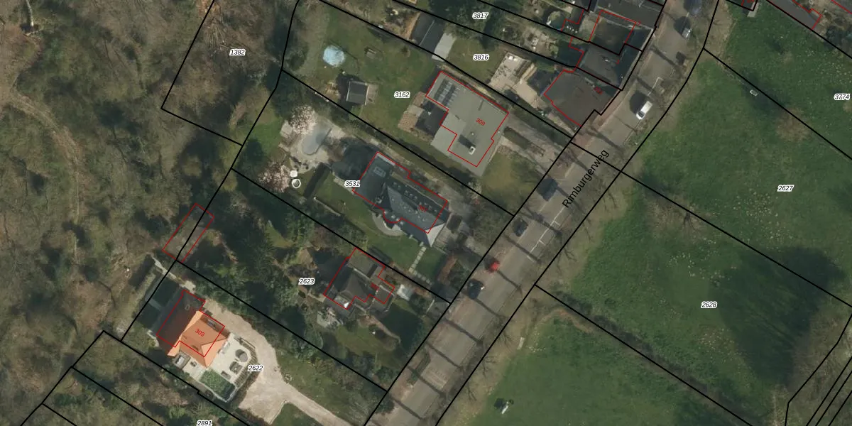 Rimburgerweg 307 is gelegen op kadastraal perceel UBH00B3531. Deze kadastrale aanduiding is uniek en wordt gebruikt door het Kadaster om eigendomsrechten en andere zakelijke rechten vast te leggen. Het perceel maakt onderdeel uit van de kadastrale gemeente Ubach over Worms.
