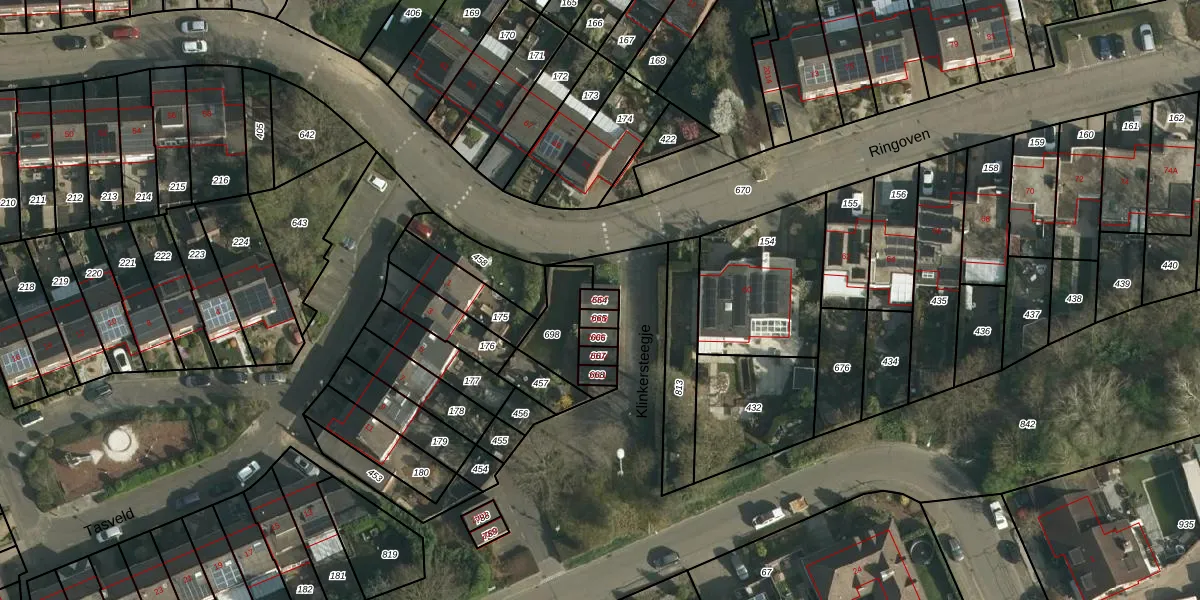 Gebruik de zoekbalk of klik op een perceel voor informatie over de adressen binnen dit perceel.