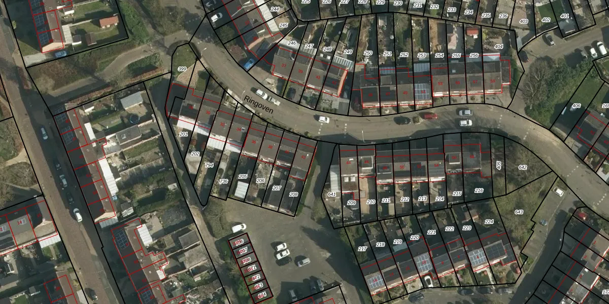 Gebruik de zoekbalk of klik op een perceel voor informatie over de adressen binnen dit perceel.