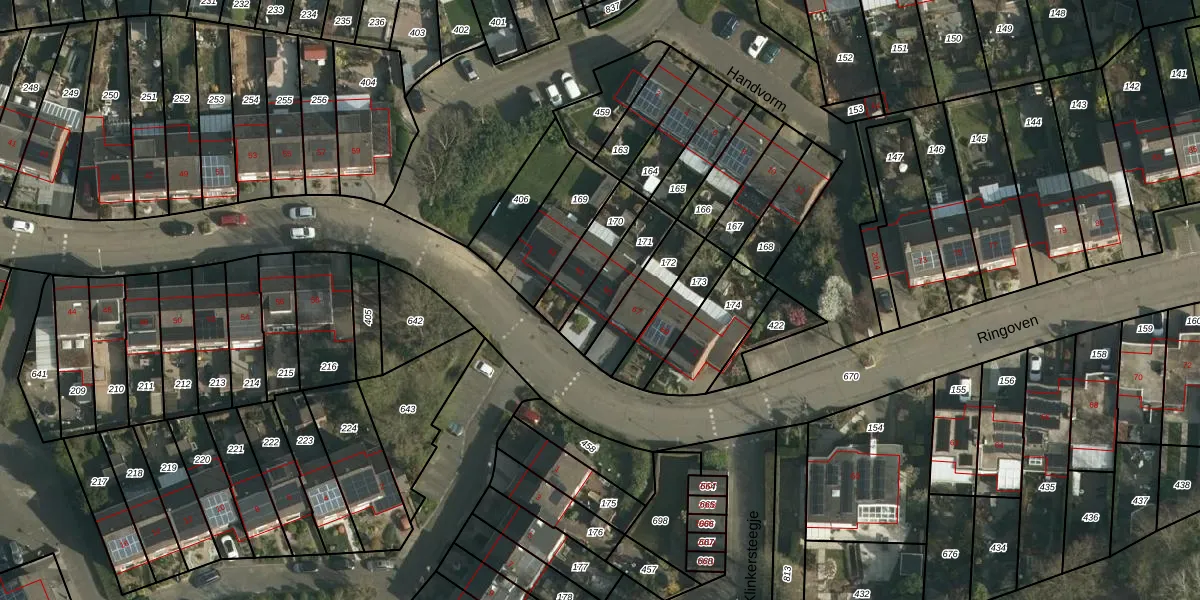 Het perceel waarop Ringoven 65 staat heeft een oppervlakte van 155 m². Dit is een middelgroot perceel. De perceeloppervlakte wordt geregistreerd door het Kadaster. Gedetailleerde informatie over de maten van dit perceel kunt u vinden in het rapport Kadastrale kaart met maatvoering van Ringoven 65.