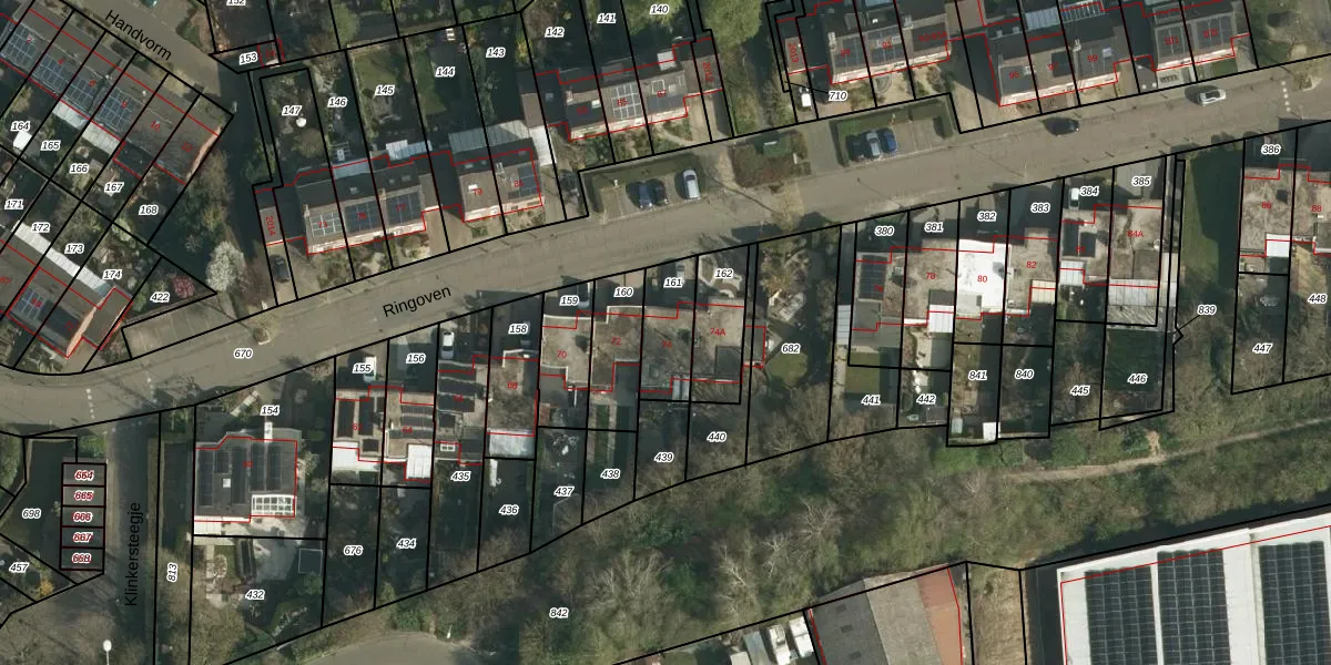 Het perceel waarop Ringoven 74 staat heeft een oppervlakte van 159 m². Dit is een middelgroot perceel. De perceeloppervlakte wordt geregistreerd door het Kadaster. Gedetailleerde informatie over de maten van dit perceel kunt u vinden in het rapport Kadastrale kaart met maatvoering van Ringoven 74.