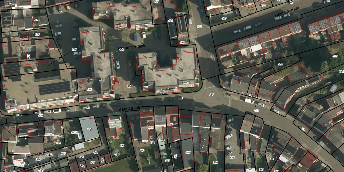 Het perceel waarop Romeinenplein 48 staat heeft een oppervlakte van 4057 m². Dit is een zeer groot perceel. De perceeloppervlakte wordt geregistreerd door het Kadaster. Gedetailleerde informatie over de maten van dit perceel kunt u vinden in het rapport Kadastrale kaart met maatvoering van Romeinenplein 48.