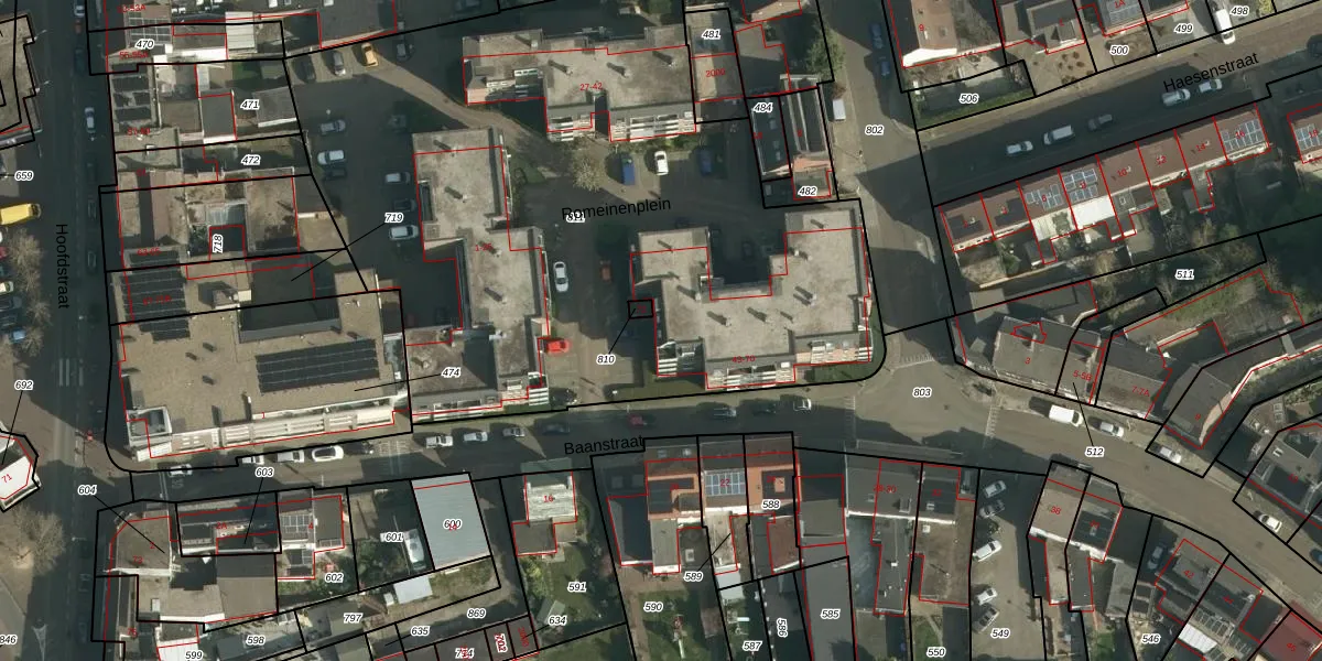 Het perceel waarop het adres ligt is LGF00-D-811. De afkorting 'LGF00' staat voor kadastrale gemeente Landgraaf. De gemiddelde perceeloppervlakte in de kadastrale gemeente Landgraaf is 1624,36 m². Dit perceel is met zijn 4057 m² dus groter dan gemiddeld. De grootste perceeloppervlakte in de kadastrale gemeente is 41,0 ha. De kleinste oppervlakte bedraagt 0 m². Er zijn 70 adressen aanwezig op het perceel. De huidige grenzen van het perceel zijn digitaal in de Basisregistratie Kadaster (BRK) geregistreerd op 22-08-2007.