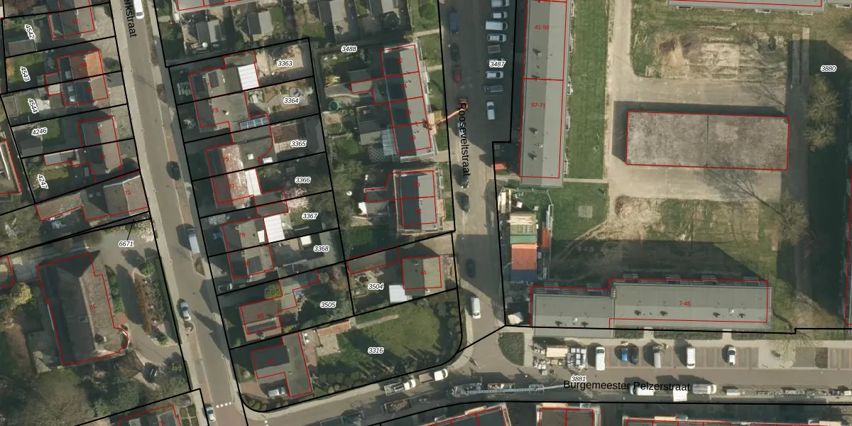 Het perceel waarop Rooseveltstraat 42 staat heeft een oppervlakte van 3035 m². Dit is een zeer groot perceel. De perceeloppervlakte wordt geregistreerd door het Kadaster. Gedetailleerde informatie over de maten van dit perceel kunt u vinden in het rapport Kadastrale kaart met maatvoering van Rooseveltstraat 42.