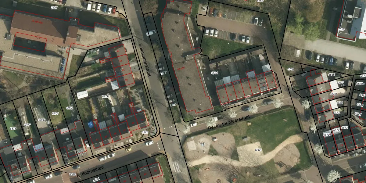 Het perceel waarop Salesianenstraat 54 staat heeft een oppervlakte van 2645 m². Dit is een zeer groot perceel. De perceeloppervlakte wordt geregistreerd door het Kadaster. Gedetailleerde informatie over de maten van dit perceel kunt u vinden in het rapport Kadastrale kaart met maatvoering van Salesianenstraat 54.