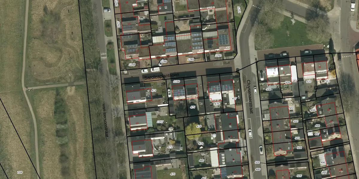 Gebruik de zoekbalk of klik op een perceel voor informatie over de adressen binnen dit perceel.